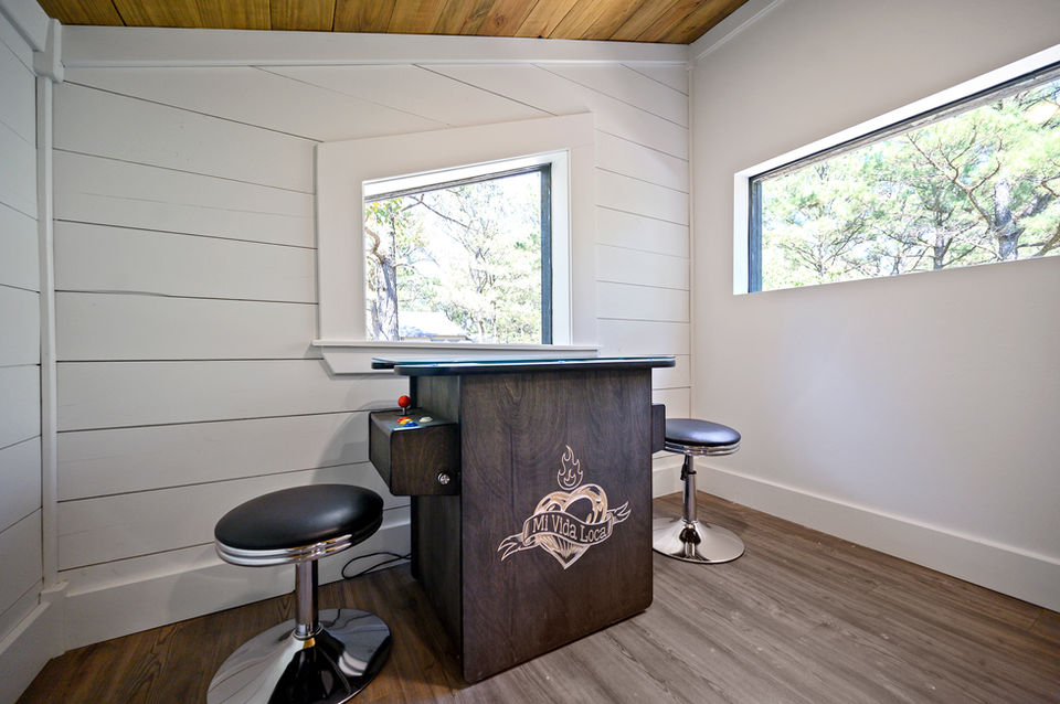 Mi Vida Loca is a premier, family focused, resort cabin with 3 bedrooms, a bunk room, 2.5 bathrooms, 8 beds and can sleep 2-12 guests- perfect for a single family or a shared family/friend experience. It is filled with tons of family activities for all ages- both indoor and out! The first floor has an open concept living/dining area as well as one king size master bedroom with a private bath. This floor also has an under-the-stairs library nook filled with pillows, a nugget sofa, educational books, toys, feeling charts and tons of family board games for all ages! The second floor has another king size master bedroom with a shared en-suite bathroom and a private balcony. The bunkroom has 2 twin over queen bunkbeds and the 3 rd floor attic space “Crow’s Nest” has 2 more twin day beds. The “Crow’s Nest” has a two player video console table, a bubble window with a view to the bunkroom below, and offers the perfect spot for bird watching!! The outside deck has plenty of seating areas, an outdoor fireplace, a grill, a hot tub and an outdoor dining table that converts into a shuffleboard table. There is a firepit, disc swings, a corkscrew slide (off of the landing), and 2 tee pees for hours of imaginative play. Wifi is available, as well as 6 TV’s (including outside), and an EV/Tesla charging outlet The resort amenities are a short 3 minute walk down the hill. Guests will have access to the resort clubhouse with pool tables, large screen TV’s, shuffleboard, a swimming pool and kiddie pool (open from March to November) and their very own private restaurant and bar that can also deliver to your cabin. There are private stocked, catch-and-release fishing ponds, bridges, waterfalls, a children’s playground, and walking trails. Mi Vida Loca is just 5 minutes away from Beavers Bend State Park and only a short drive to all the great restaurants, outdoor activities, and local entertainment an attractions in Broken Bow and Hochatown.